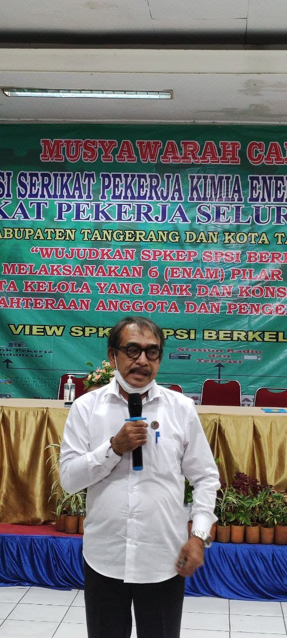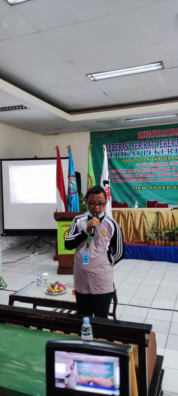Ketua yang terpilih dalam Musyawarah Cabang V FSP KEP SPSI Kabupaten Tangerang dan Kota Tangerang Selatan untuk masa bakti periode tahun 2021-2026 Subiyanto, S.Sos, S.H, Mkn.
