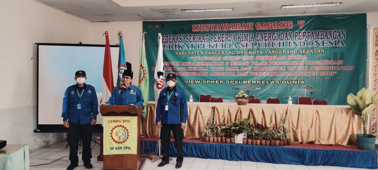 CEMWU NEWS – Bogor, Pimpinan Cabang Federasi Serikat Pekerja Kimia, Energi dan Pertambangan Serikat Pekerja Seluruh Indonesia Kabupaten Tangerang dan Kota Tangerang Selatan lakukan Musyawarah Cabang (MUSCAB) VPC FSP KEP SPSI Kabupaten Tangerang dan Kota Tangerang Selatan pada tanggal 6-8 Oktober 2021 bertempat di Hotel Dirga Cibulan, Bogor.