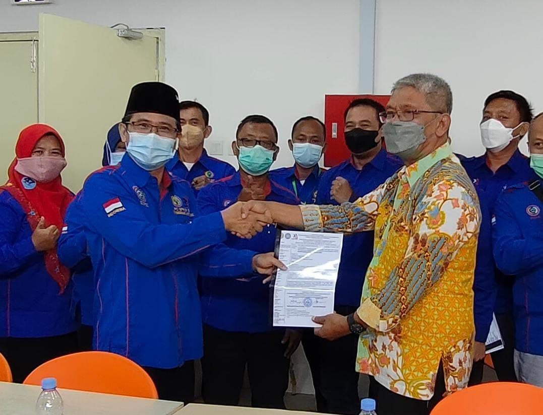 Subiyanto Menyerahkan hasil Muscab V ke Kadisnaker Kota Tangerang Selatan