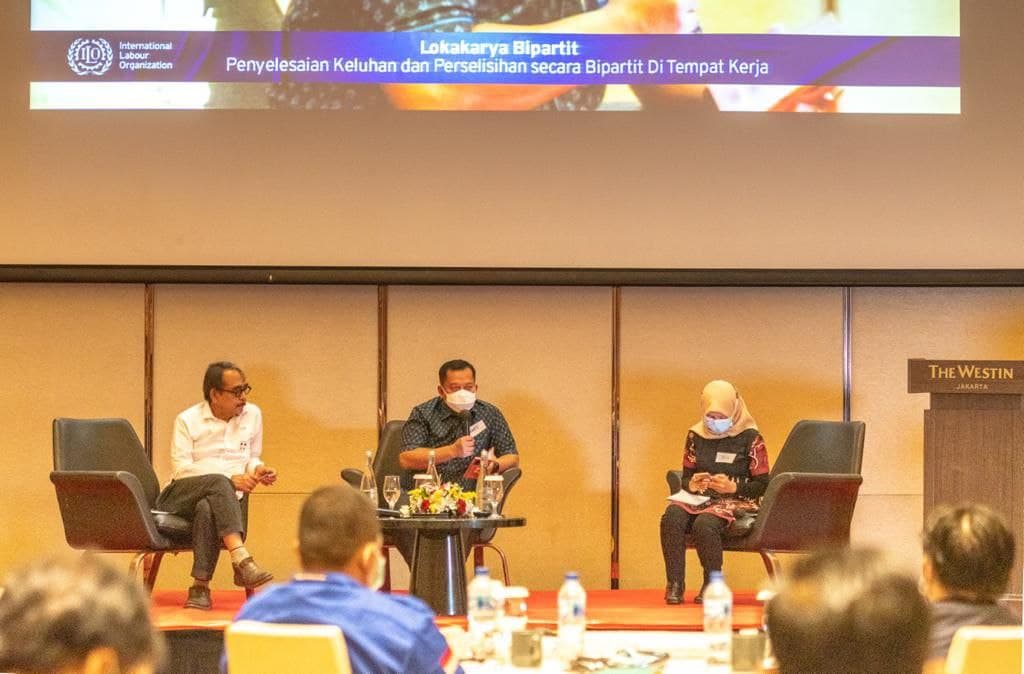 Selasa, 02 November 2021 – International Labour Organization (ILO) kantor jakarta menyelenggarakan Loka Karya Bipartit Penyelesaian Keluhan dan Perselisihan secara Bipartit di Tempat Kerja. Peserta loka karya terdiri dari Unsur Serikat Pekerja dan Unsur Managemen Perusahaan.