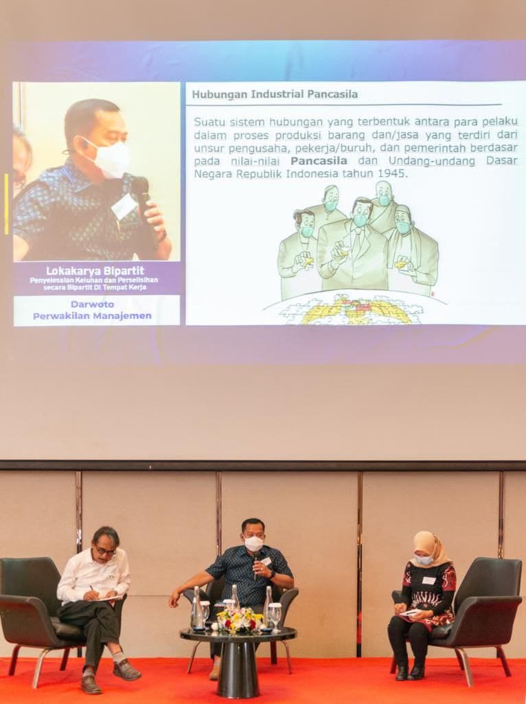 Diskusi sesi kedua mengenai Mengelola dan menangani keluhan dan perselisihan di tempat kerja. Pemapar pertama oleh Bapak Darwoto. Beliau adalah General Manager Pengelola Kawasan Industri MM 2100 dan Dewan Pimpinan Nasional Asosiasi Pengusaha Indonesia disingkat DPN APINDO. Pak darwoto menyampaikan salah satu solusi dalam menenyelesaikan perselisihan ketenagakerjaan adalah dengan Reaktualisasi Hubungan Industrial Pancasila. Dengan lebih mengoptimalkan peran dan fungsi masing – masing Lembaga , Lembaga Kerjasama Tripartit, Serikat Pekerja, Pengusaha dan Pemerintah sehingga sila ke lima Pancasila “Keadilan Sosial Bagi Seluruh Rakyat Indonesia” bisa tercapai.