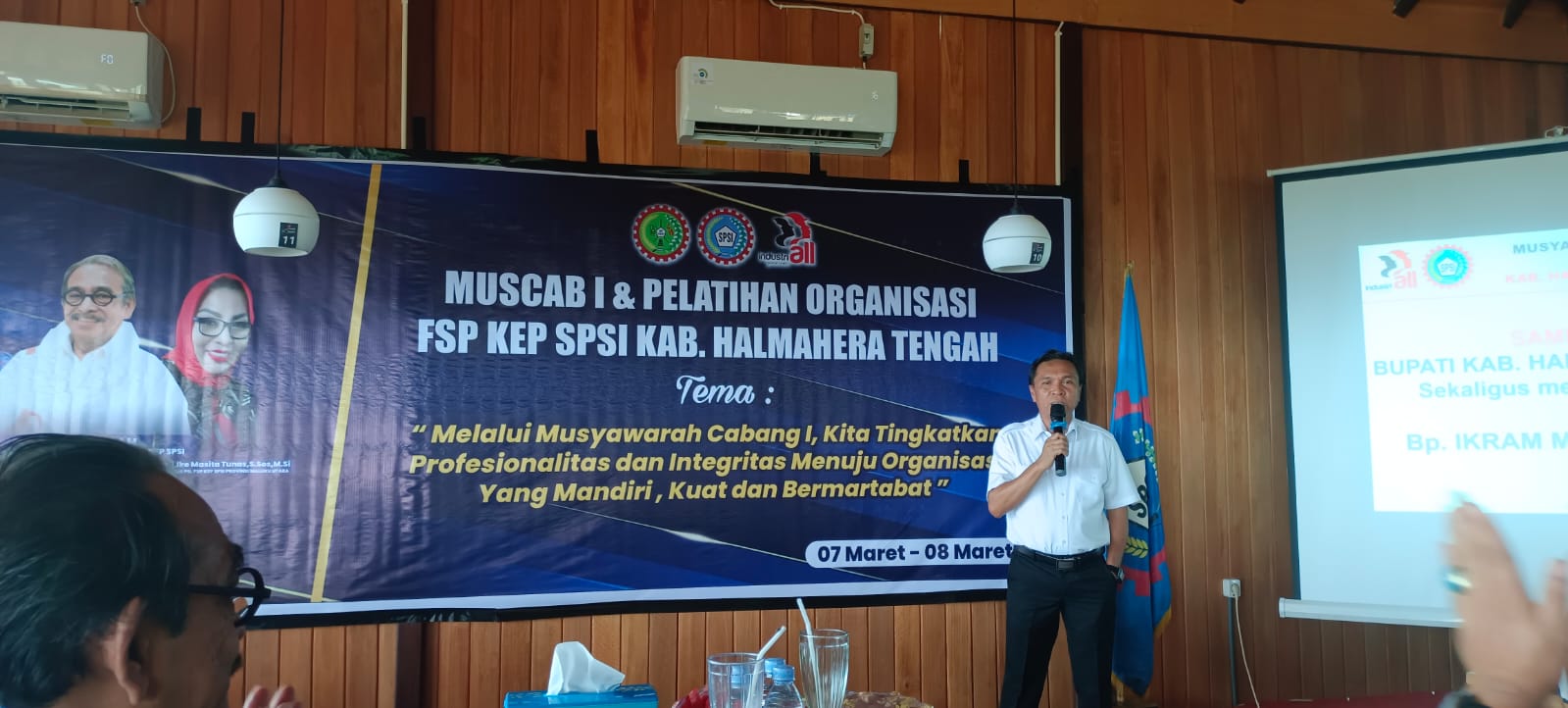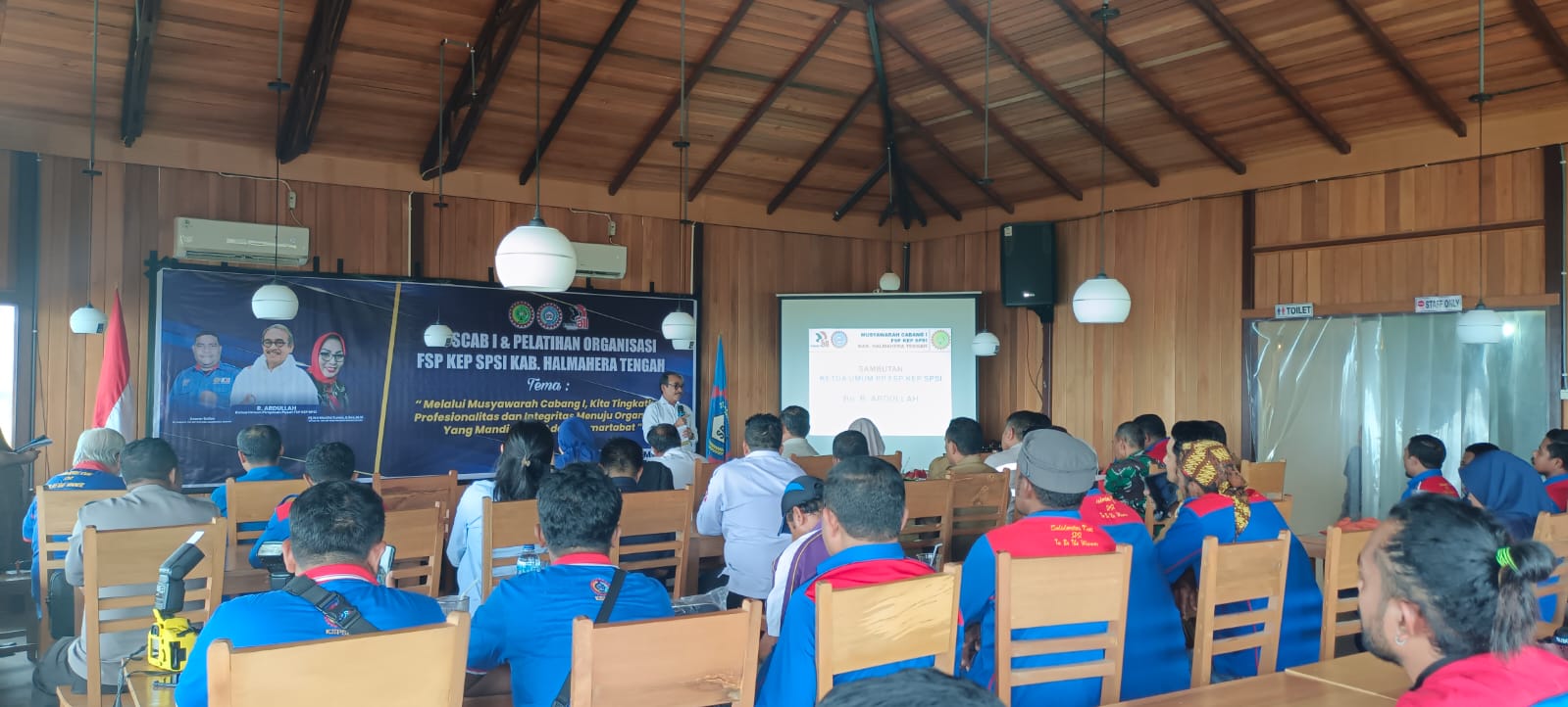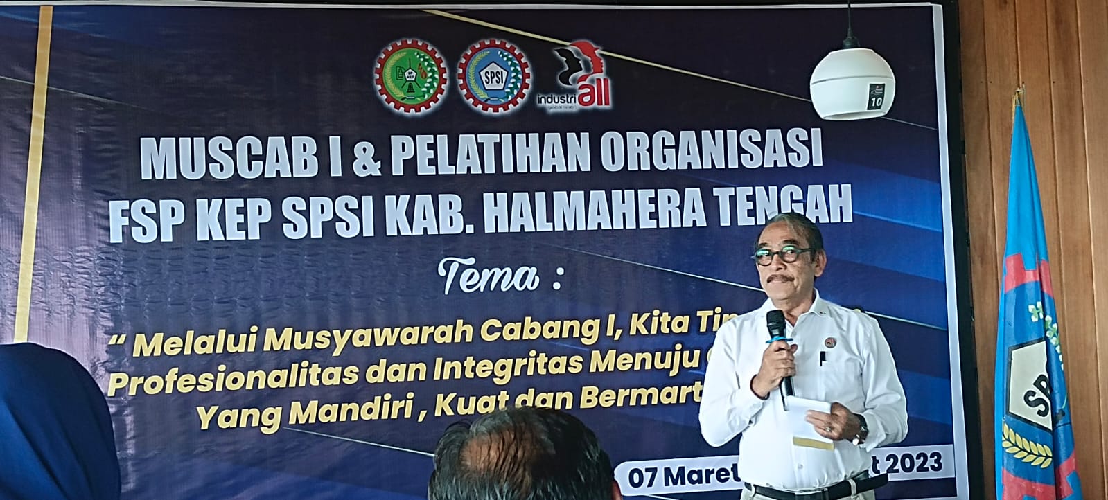 CEMWU, Halmahera Tengah — Musyawarah Cabang (MUSCAB) I dan Pelatihan Organisasi FSP KEP SPSI Kabupaten Halmahera Tengah, 7 Maret 2023.