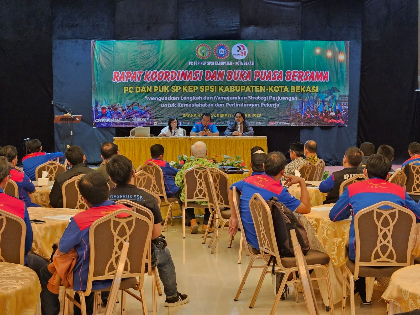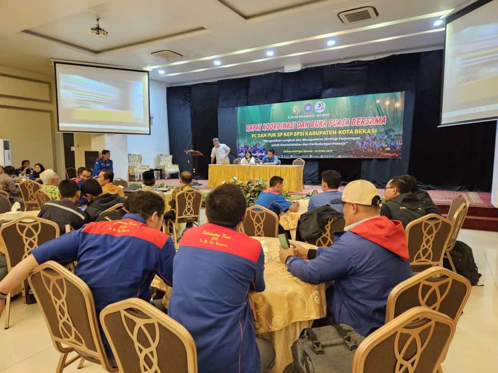 CEMWU, Bekasi — Ratusan Pengurus Cabang, Serikat Pekerja Kimia Energi Pertambangan, Serikat Pekerja Seluruh Indonesia (PC KEP SPSI) Kota dan Kabupaten Bekasi. Menghadiri kegiatan Rapat Koordinasi Dan Buka Bersama PC dan PUK SP KEP SPSI Kota dan Kabupaten Bekasi.
