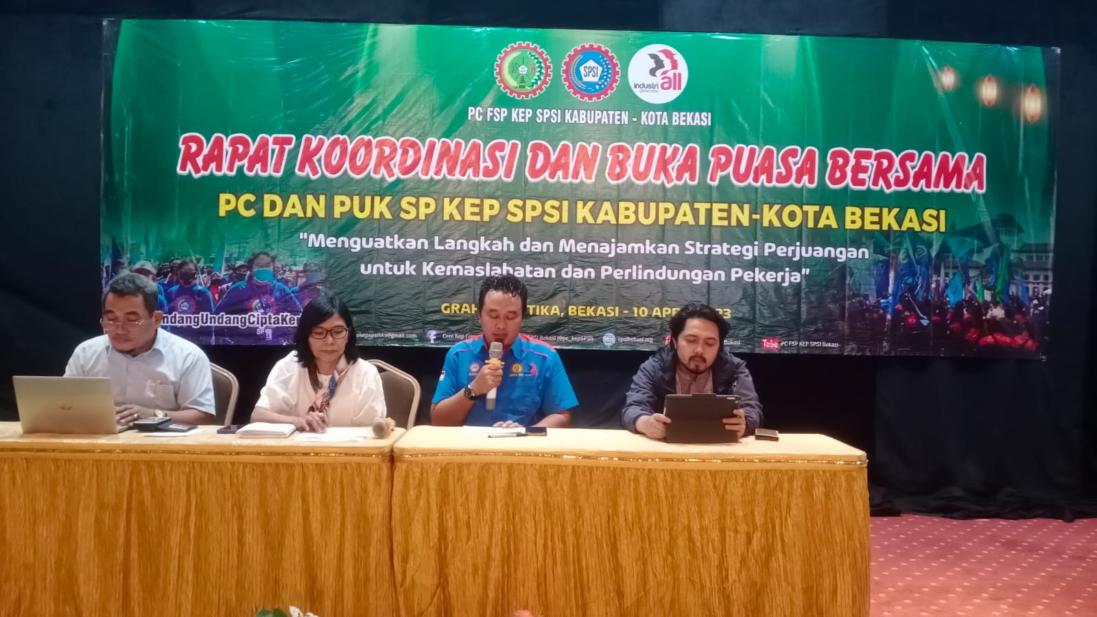 Pada kegiatan Rapat Koordinasi Dan Buka Bersama PC dan PUK SP KEP SPSI Kota dan Kabupaten Bekasi dimulai sekitar pukul 13.00wib siang. Diisi nara sumber dari DPP SP KEP SPSI dan Para Pakar di bidang Perburuhan dan Ketenagakerjaan.