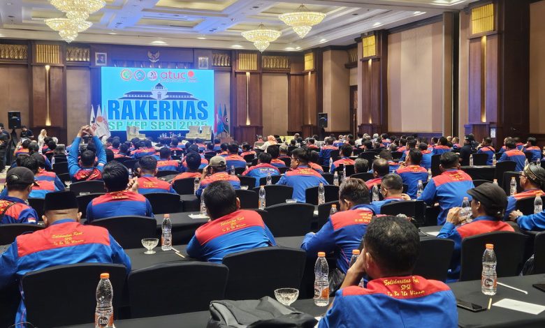 Rakernas 2025 mengusung tema: “Akselerasi Mewujudkan SPKEP SPSI Berkelas Dunia Melalui Peningkatan Jumlah Anggota dan Kemandirian Keuangan Organisasi untuk Menjawab Tantangan Ketenagakerjaan.”
