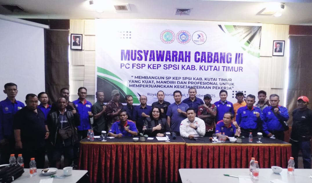 Kutai Timur, 1 Oktober 2025 — Pelantikan pengurus baru PC FSP KEP SPSI Kabupaten Kutai Timur untuk masa bakti 2025-2030 resmi digelar sebagai bagian dari rangkaian Musyawarah Cabang (MUSCAB) III. Acara ini berlangsung setelah pemilihan yang demokratis, di mana Jurifer Sitinjak terpilih sebagai Ketua dengan perolehan 14 suara, mengungguli kandidat lainnya, Yunus, yang memperoleh 2 suara.