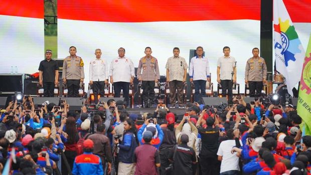 Apel kebangsaan ini turut dihadiri oleh sejumlah tokoh nasional dan lokal, termasuk Kapolri Jenderal Polisi Listyo Sigit Prabowo, Presiden Konfederasi Serikat Pekerja Indonesia (KSPI) Said Iqbal, serta Presiden Konfederasi Serikat Pekerja Seluruh Indonesia (KSPSI) Andi Gani Nena Wea. Dari unsur pemerintahan daerah, hadir Bupati Bekasi Ade Kuswara Kunang bersama Wakil Bupati Asep Surya Atmaja, serta jajaran pimpinan dinas dan aparat pemerintah daerah Kabupaten Bekasi.