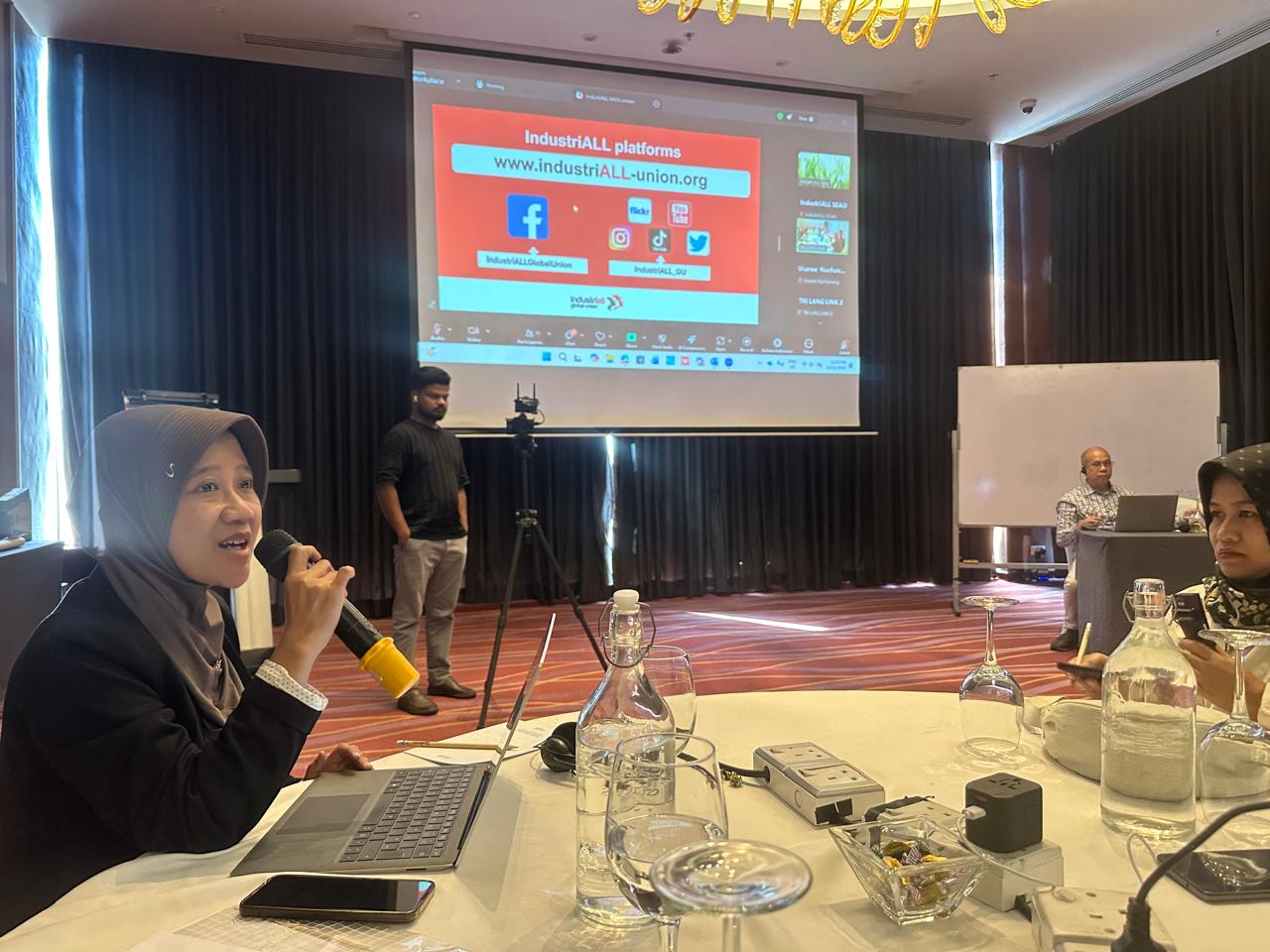 Dalam sesi ini, Pupu Pujawati dari PUK SPKEP SPSI PT Unilever Indonesia menyampaikan bahwa Unilever telah menandatangani Global Framework Agreement (GFA), namun masih diperlukan: