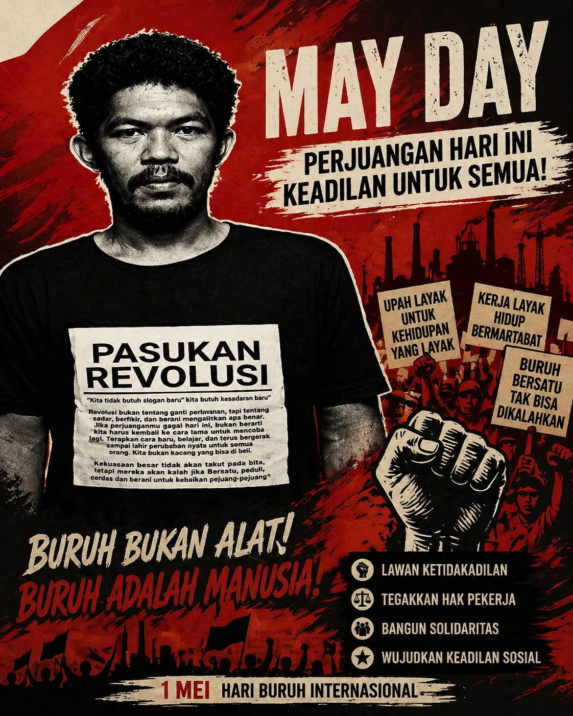 Pada akhirnya, kualitas suatu bangsa tidak hanya diukur dari pertumbuhan ekonomi dan besarnya investasi yang masuk, tetapi juga dari sejauh mana negara mampu menjamin martabat hidup para pekerjanya. Buruh bukan sekadar angka dalam laporan produksi, melainkan manusia yang menjadi fondasi utama pembangunan. Oleh karena itu, memperjuangkan hak buruh bukan hanya menjadi urusan kelompok pekerja, melainkan bagian dari perjuangan besar untuk mewujudkan keadilan sosial bagi seluruh rakyat Indonesia.